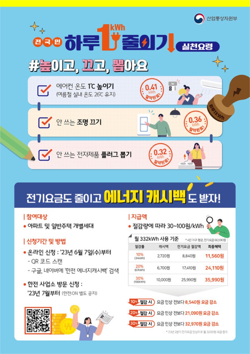 절약하는 만큼 더 많은 캐시백을 받을 수 있기 때문에 고물가 시대에 절약하는 즐거움도 찾고 제도의 취지대로 불필요한 전기 사용을 줄이고 낭비하는 습관 또한 고친다면 일석이조의 효과를 거둘 수 있겠죠?